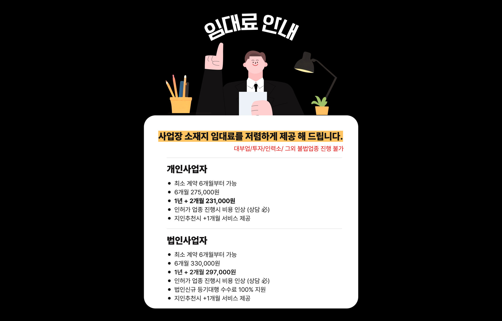 사업자 소재지 임대 후 다양한 서비스도 이용 가능합니다.